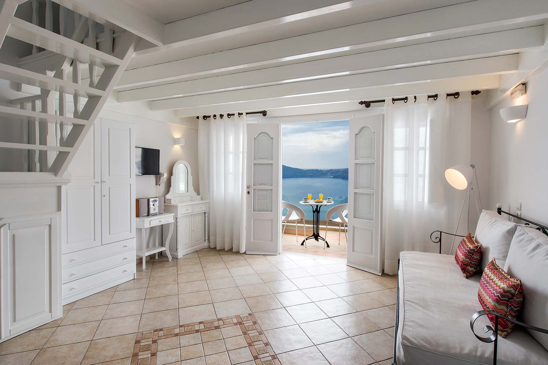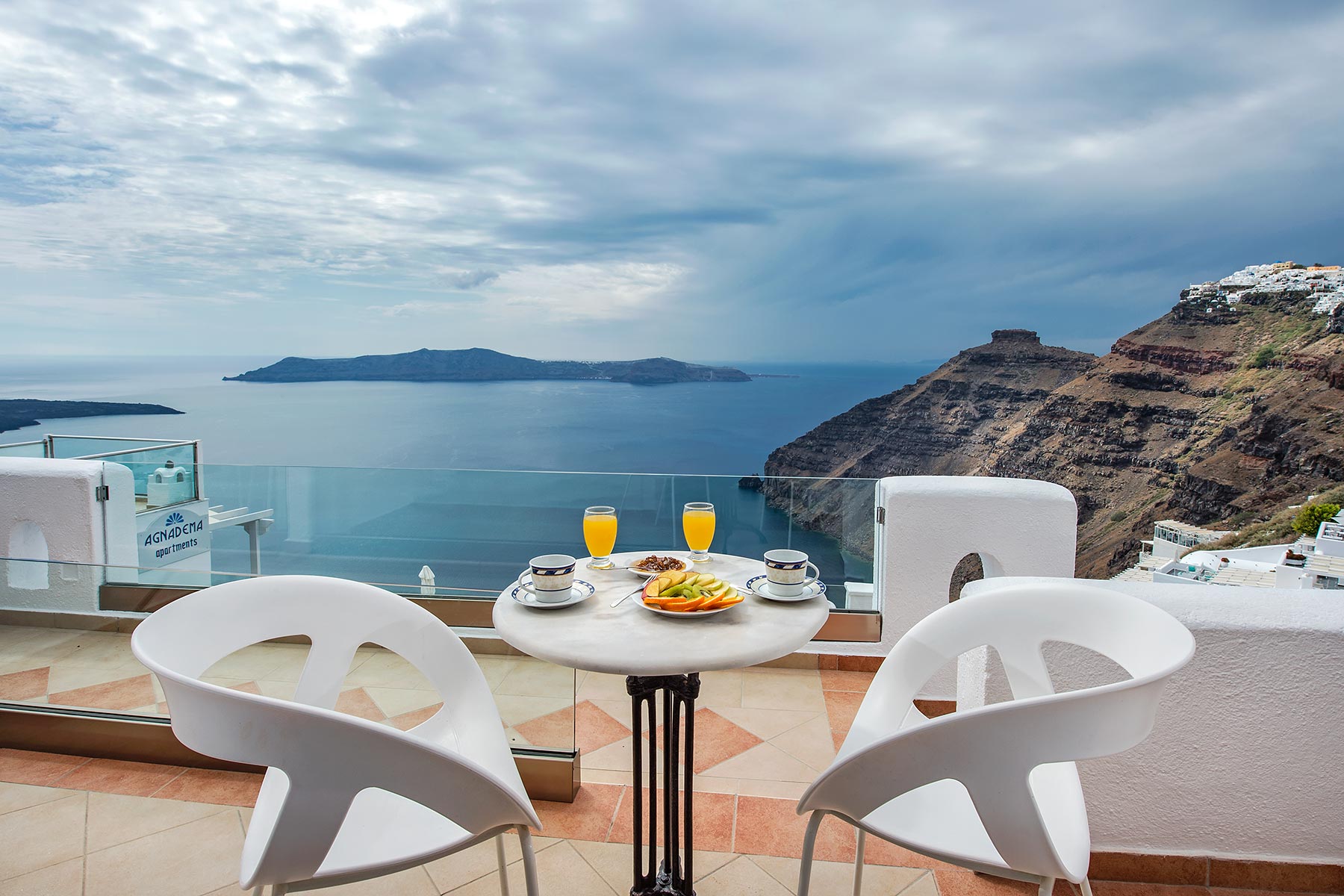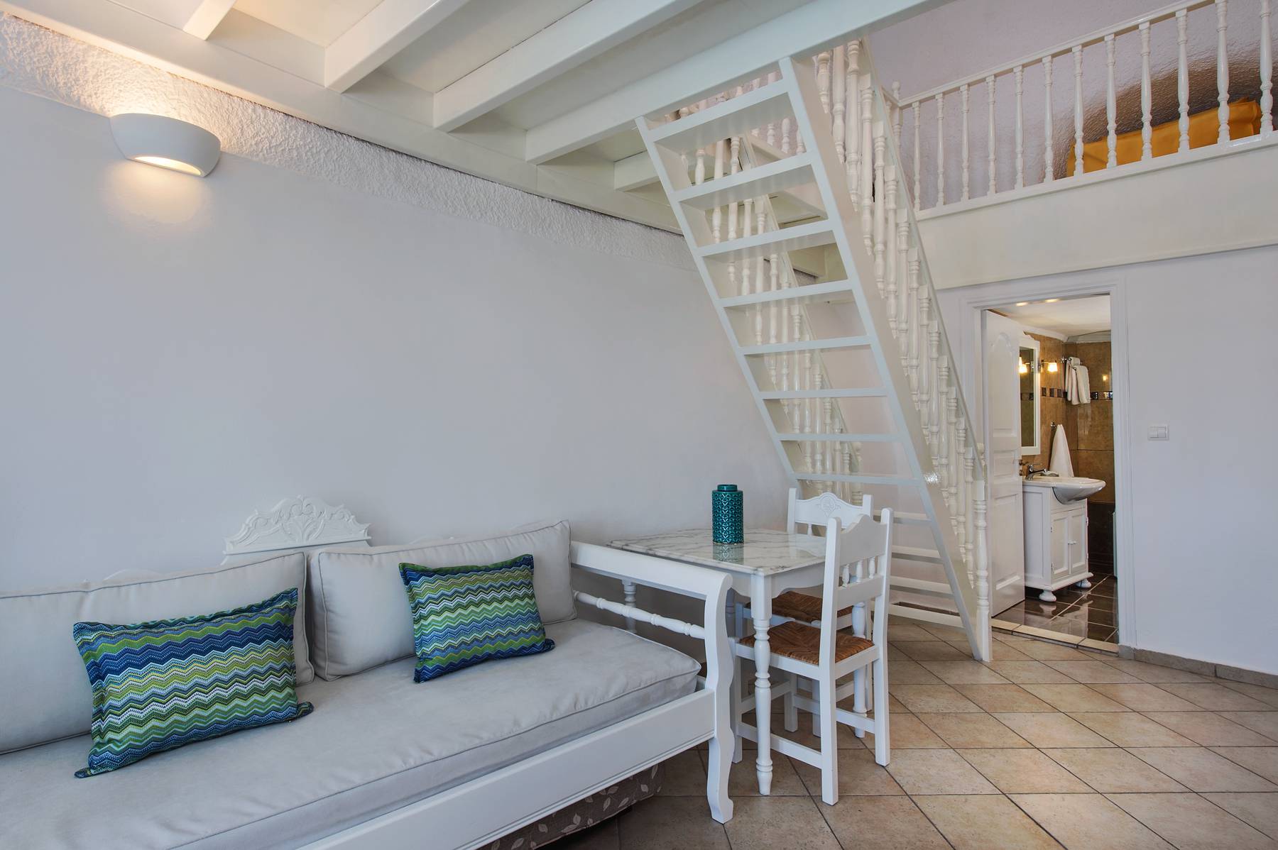The Apartment with a private balcony of Agnadema Apartments in Firostefani is a perfect choice for families and friends who want to enjoy a complete stay in Santorini. Some units are split in two levels, where 2 additional sofa beds can accommodate 2 more guests. The private balcony is where you can gather and enjoy the stunning view to the sea.