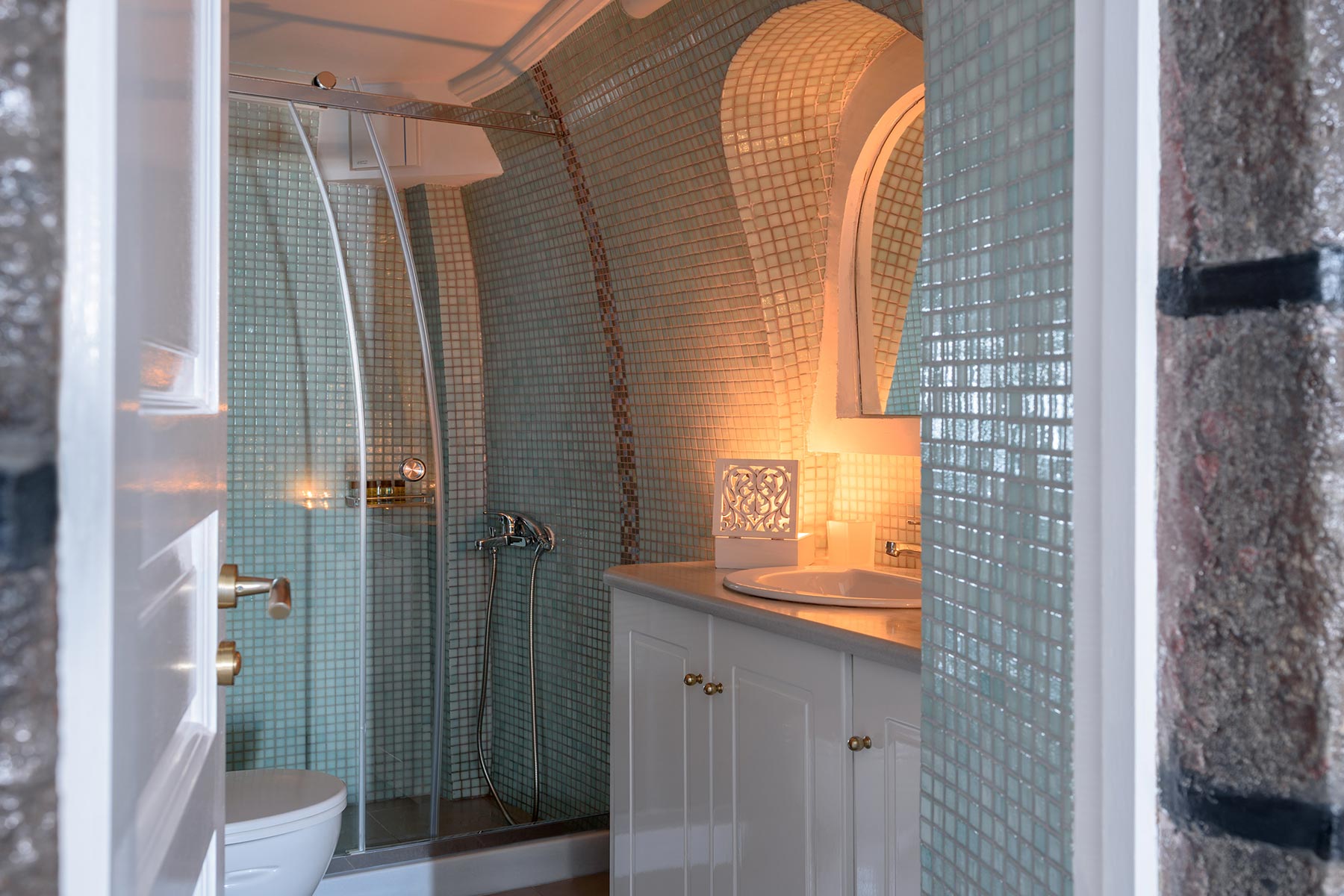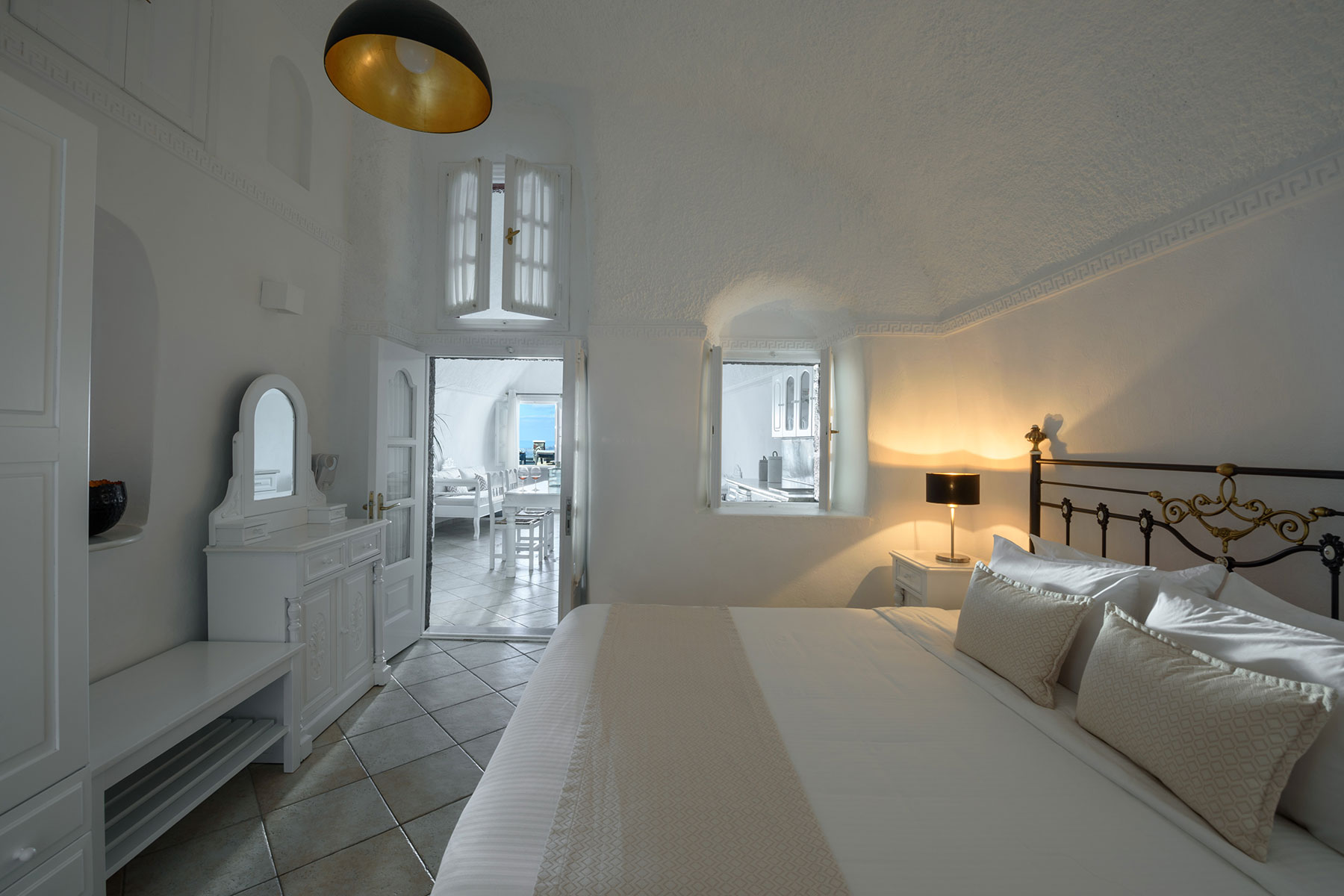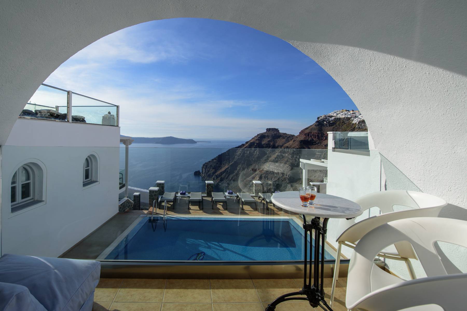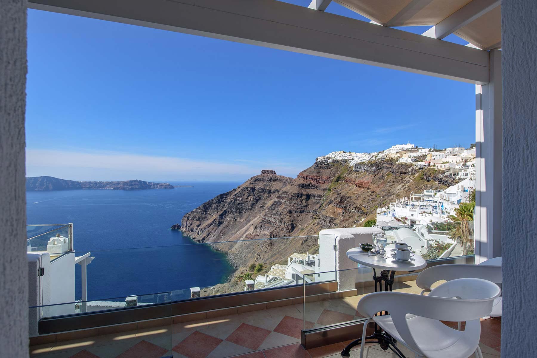The Apartment with a private balcony of Agnadema Apartments in Firostefani is a perfect choice for families and friends who want to enjoy a complete stay in Santorini. Some units are split in two levels, where 2 additional sofa beds can accommodate 2 more guests. The private balcony is where you can gather and enjoy the stunning view to the sea.